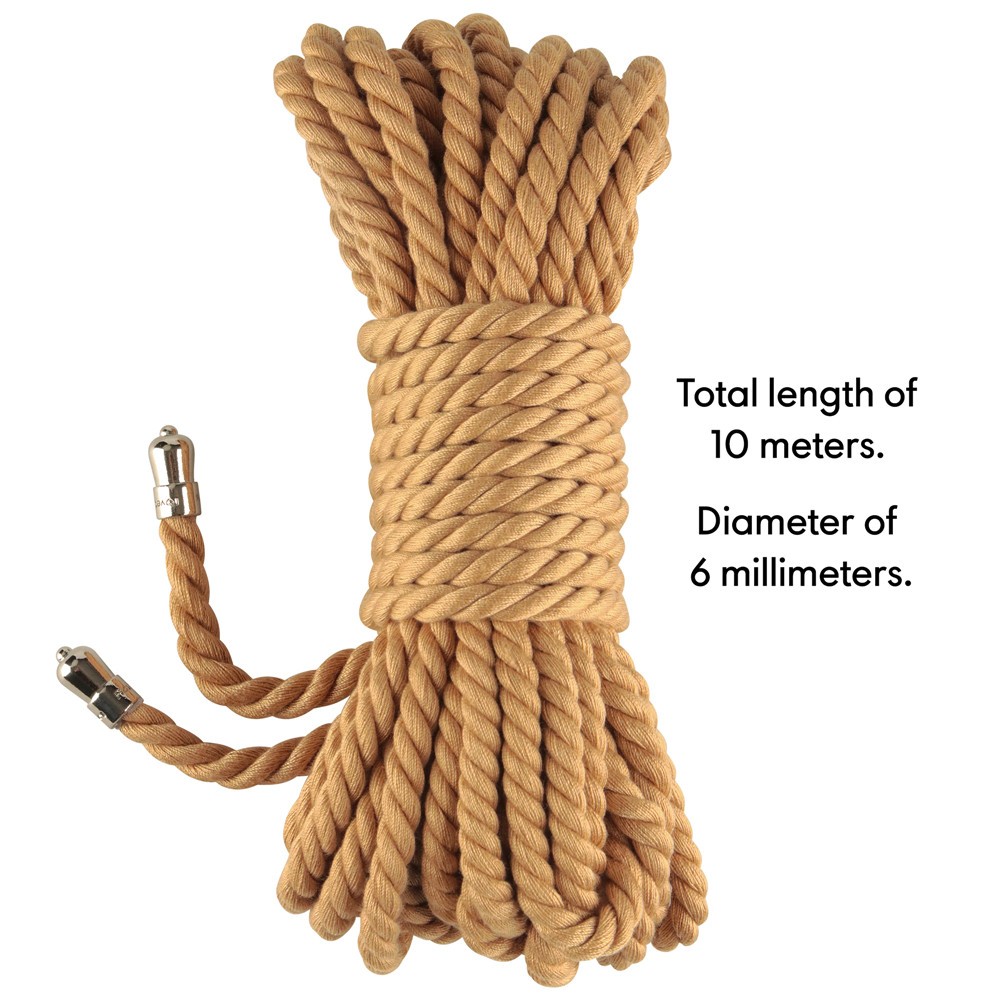 Fabricată dintr-un amestec modern și de calitate care imită delicatețea bumbacului cu noile tehnologii, această frânghie depășește așteptările în ceea ce privește confortul și rezistența în timp. Cu o lungime de 10 metri și o construcție rezistentă, este potrivită atât pentru cei aflați la început de drum în ale BDSM-ului, cât și pentru cei experimentați în arta bondage-ului.