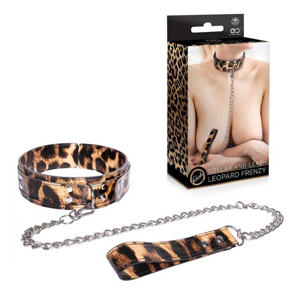 Leopard Frenzy este un accesoriu fetish conceput pentru a reduce sentimentul de libertate în timpul partidelor sălbatice de amor. Poate fi un produs exceptional pentru a vă condimenta întâlnirile intime dar și jocurile de rol. Pachetul conține o zgardă ajustabilă între 34 și 52 cm și o lesă cu lanț de 53 cm.