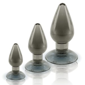 Setul conține trei dopuri anale flexibile, de dimensiuni diferite:
