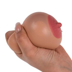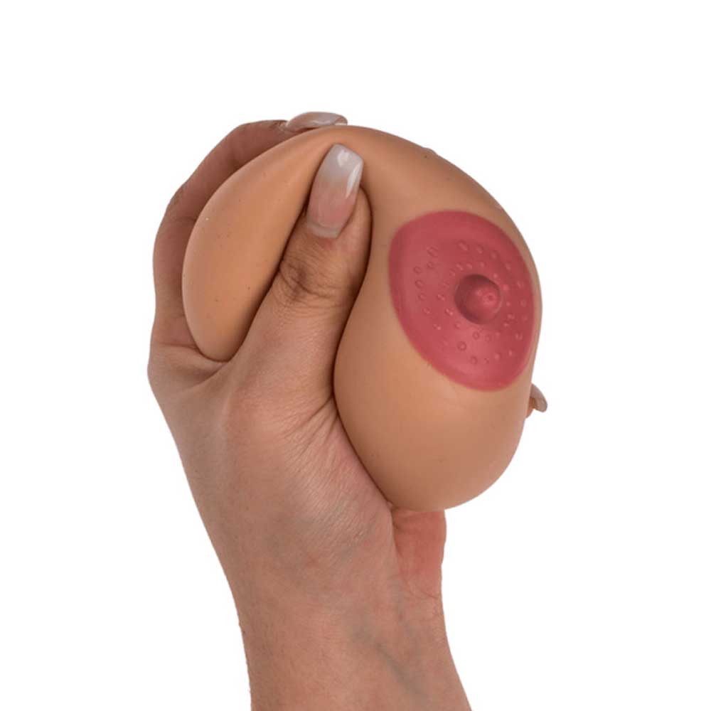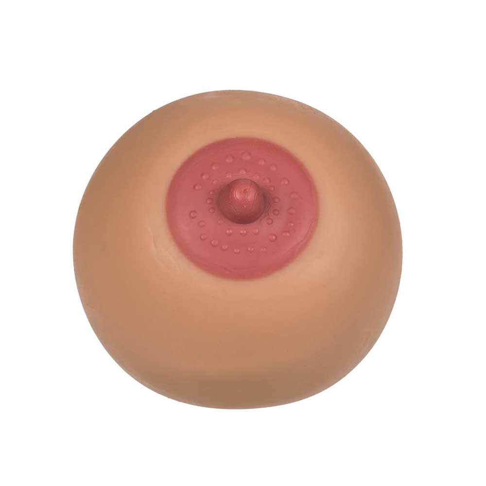 Squeeze Ball XL Boob este o minge antistres în formă de sân, cu un aspect realistic, inclusiv detalii ale mamelonului și ale texturii pielii.