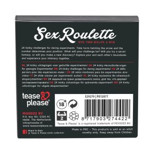 Sex Roulette este un joc creat de Tease & Please, perfect pentru a reaprinde scânteia și entuziasmul erotic în viața voastră de cuplu. Tot ce aveți nevoie este o singură rotire a săgeții de pe tabla jocului pentru a da startul unei aventuri incitante.