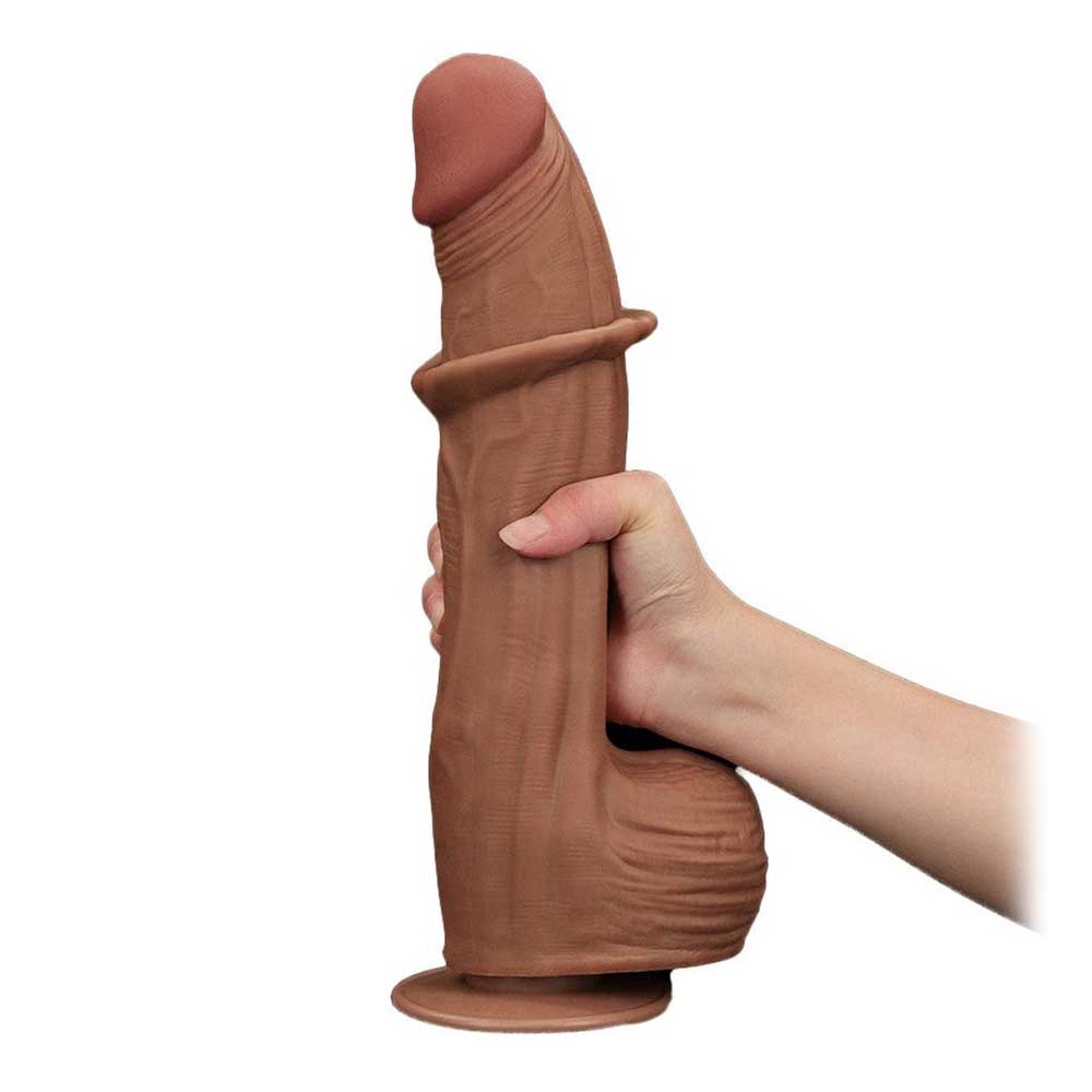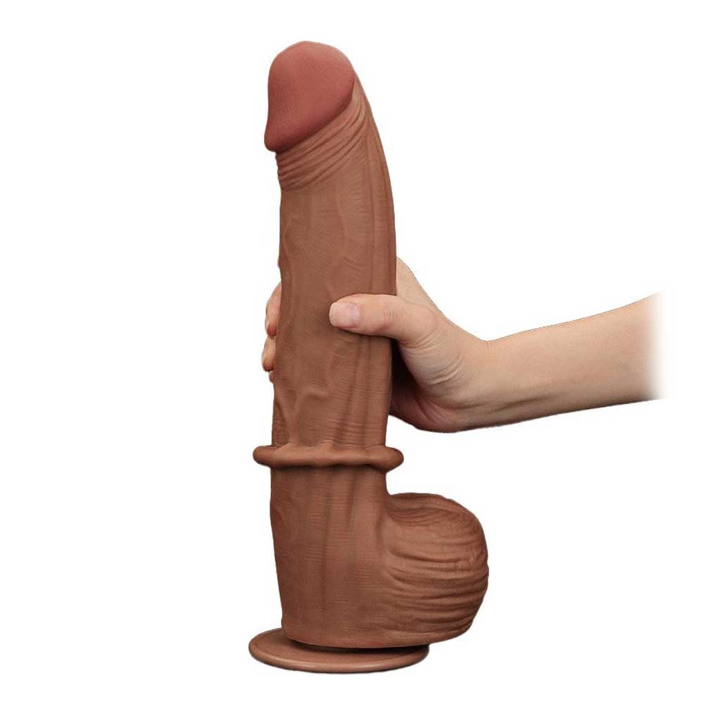 King Sized Sliding Skin Dual Layer de 31 cm (23 inserabil) de la LoveToy este unul dintre cele mai bine definite dildouri din catalogul nostru. Are un aspect foarte realistic, cu striații ale muschilor de pe suprafața sa care vor asigura o stimulare excepționale.