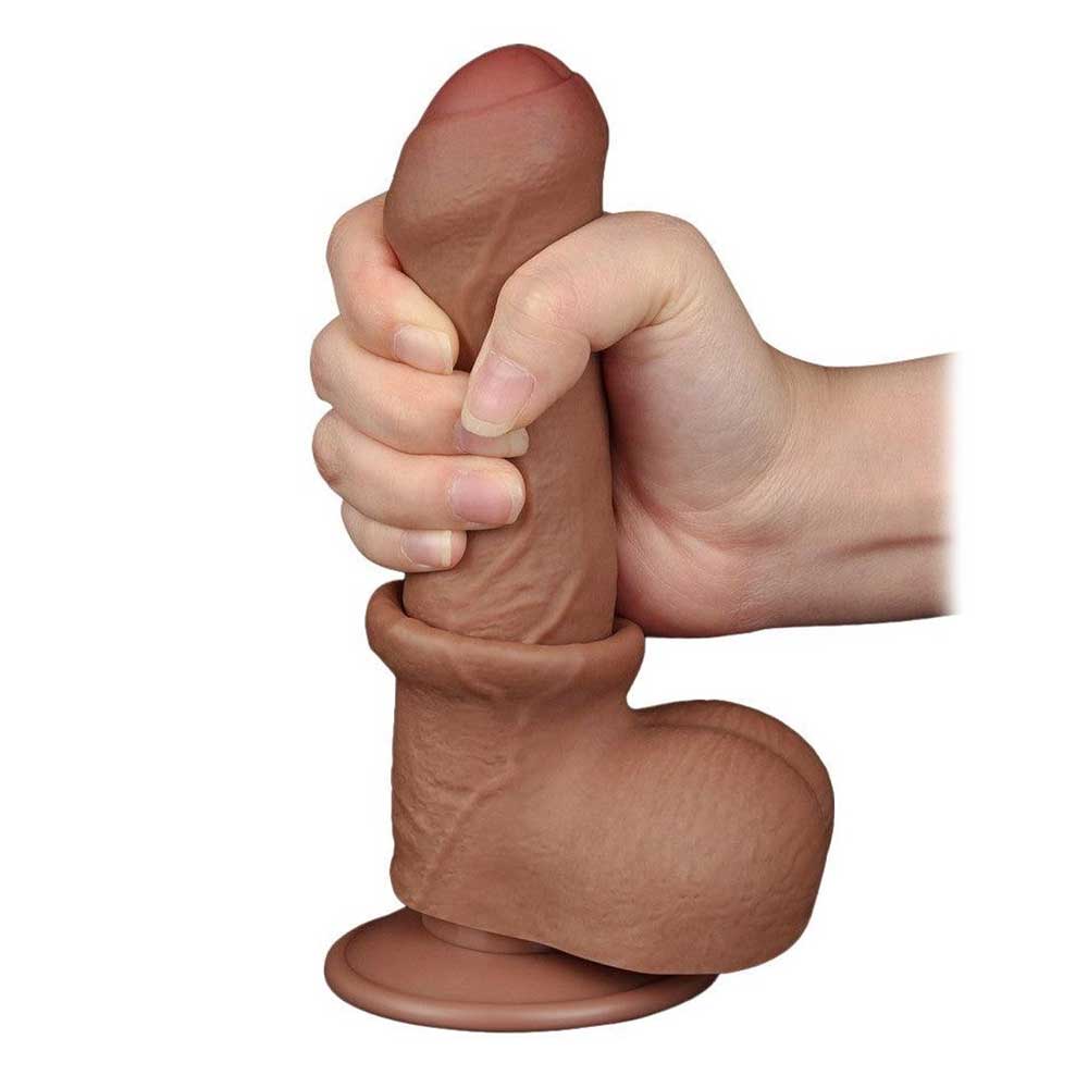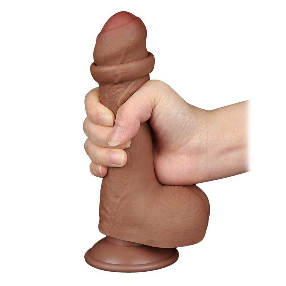 Sliding Skin Dual Layer Dong Brown ete un dildo fabricat din material realistic cu strat dublu și un design cu glandul semi-decalotat. Acest dildo este ideal pentru o senzație naturală, iar tehnologia specială de densitate dublă face o treabă excelentă în a simula senzația unui penis erect.