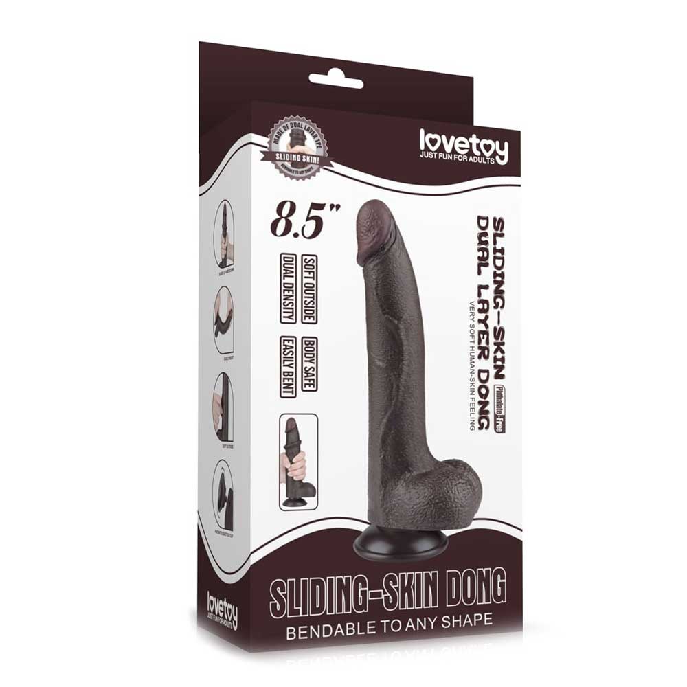 Sliding Skin Dual Layer este un dildo cu ventuză la bază de culoare neagră produs de Lovetoy. Acest dildo realistic și mare ca dimensiuni este fabricat din TPE de calitate foarte bună. Produsul are strat dublu, materialul este asemănător cu pielea umană alunecoasă, în două straturi pentru o senzație cât mai naturală. Produsul foloseste tehnologia cu densitate duală.