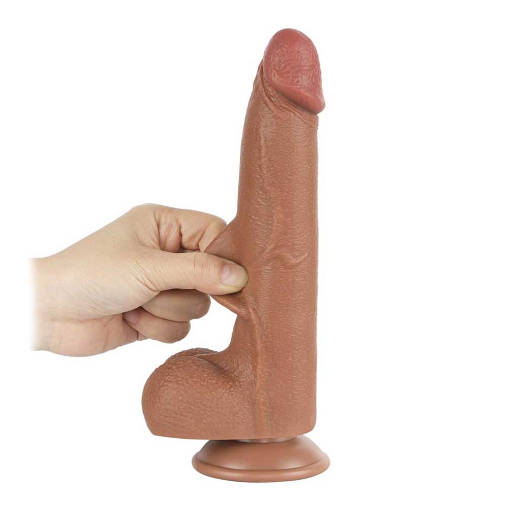 Sliding Skin Dual Layer Dong este un dildo fabricat din material realistic cu strat dublu! Acest dildo este ideal pentru a simți o senzație naturală și folosește o tehnologie specială denumită dublă densitate pentru a simula senzația unui penis erect. Te poți bucura de o piele exterioară moale și un interior foarte ferm. Se poate îndoi foarte ușor și adopta orice formă.