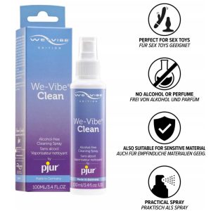 We-Vibe Clean este un spray igienizator pentru o curățare blândă și igienică a jucăriilor intime, pielii și zonei intime, fără alcool.