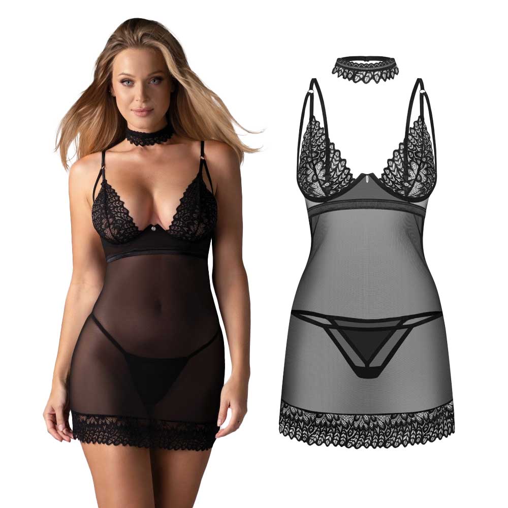 Set Erotic 3 Piese Donarella Chemise, Choker & Thong – XS/S