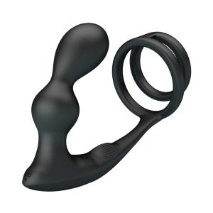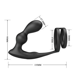 - Combinație de inel pentru penis & testicule cu plug anal cu vibrații