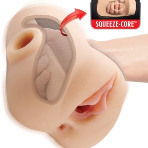 Double Pounder Vibrating Squeeze este un masturbator pentru bărbați creat cu un nivel incredibil de realism, textură moale asemănătoare pielii și un design patentat Squeeze-Core care schimbă total jocul atunci când vine vorba de 2 lucruri: