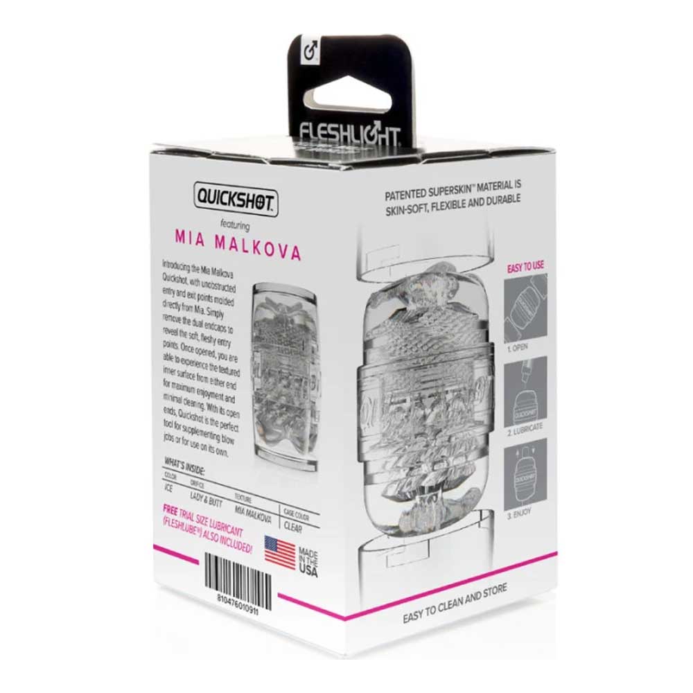Cu Mia Malkova Quickshot™️ de la Fleshlight, compact și transparent, vei putea controla fiecare moment satisfăcător al auto-plăcerii. Produsul vine atât cu vaginul cât și cu fundul Miei și îți oferă 2 modalități de a te bucura de timpul petrecut cu această zeiță a sexului. Sau poți invita un partener pentru o acțiune orală în trei cu Mia.