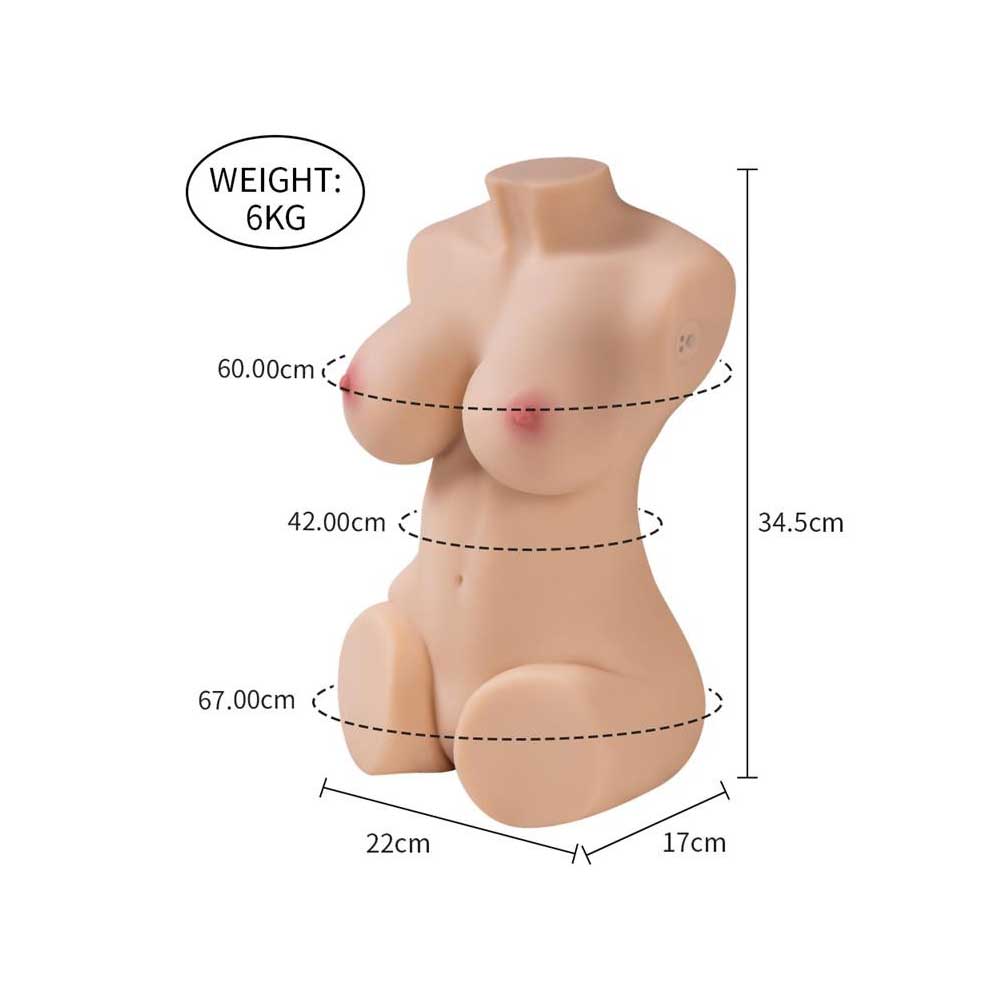 Acest masturbator are 4 moduri de vibrație și 5 funcții de sucție, pe care le controlezi ușor cu ajutorul unei telecomenzi wireless. Bustul are o greutate de 6 kg, ceea ce asigură o stabilitate la folosire dar și un vibe realistic. Ai la dispoziție 2 orificii pe care le poți penetra: vagin și anus. Detalii produs: