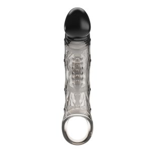 Fabricat din TPE moale și flexibil, acest prelungitor se mulează perfect pe penis, iar bucla (inelul) pentru testicule asigură stabilitatea în timpul utilizării. În partea centrală se află un mini-vibrator puternic, conceput pentru a intensifica stimularea partenerei în timpul penetrării.