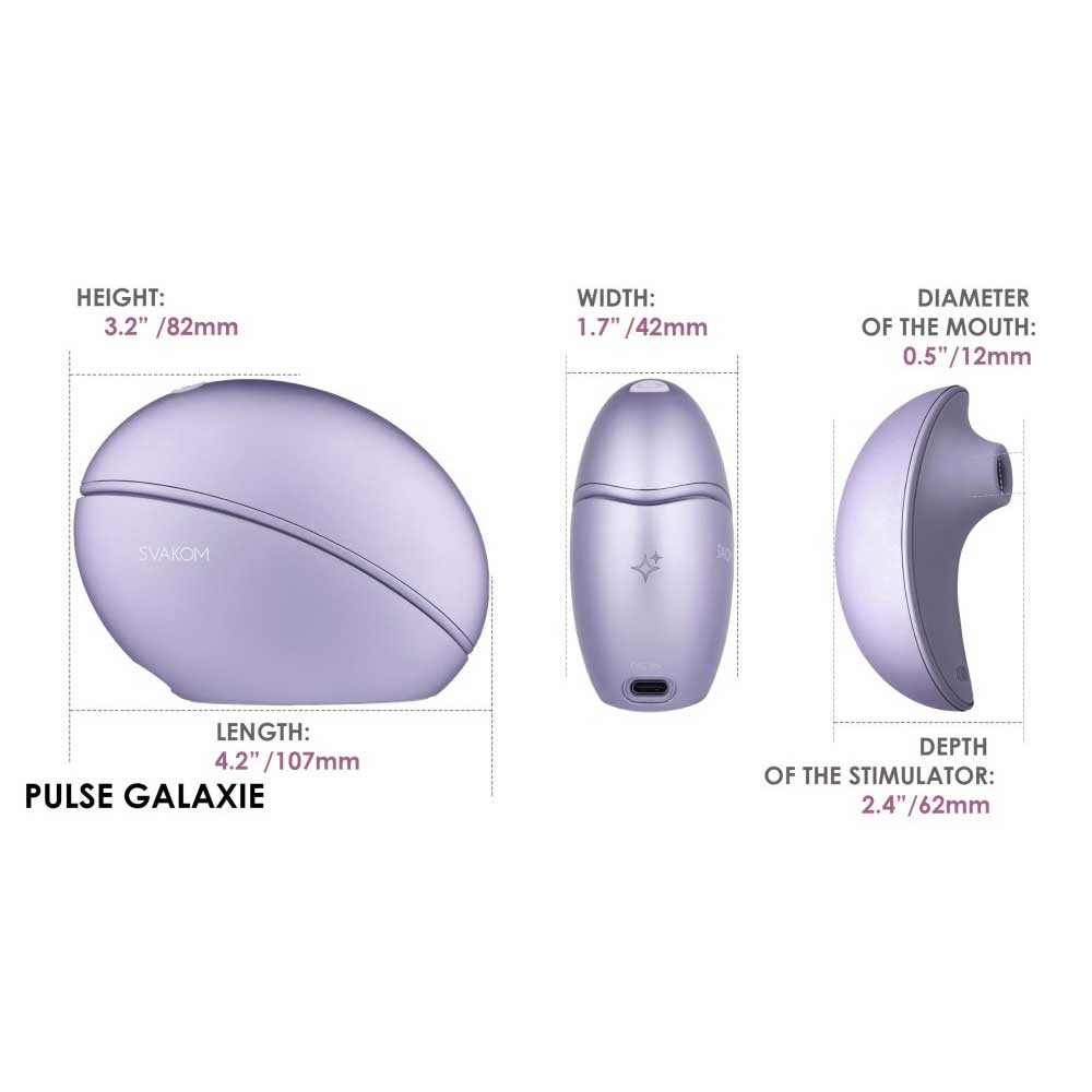 Pulse Galaxie Metallic este un stimulator de clitoris care te va ajuta să descoperi un alt tip de stimulare clitoridiană. Spre deosebire de multe alte stimulatoare clitoridiene, acesta împinge și trage aer pentru a crea un efect de sucțiune, în timp ce stația de încărcare proiectează un spectacol de lumini stelare.
