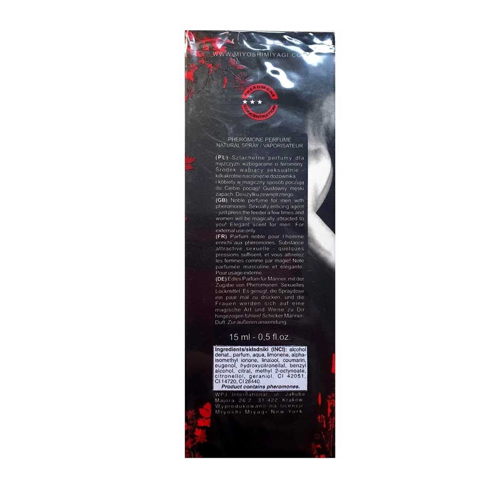 Produs cu efect puternic, datorită concentrației maxime de feromoni. Formula Miyoshi Miyagi a fost creată utilizând cunoștințele despre proprietățile biochimice ale feromonilor și cele mai vechi tradiții japoneze în arta parfumeriei. Printre ingredientele sale se numără Androstenol, Androstenon și Alpha-Androstenol.