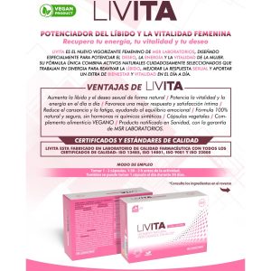 - Lubrifiere naturală mai intensă, poți spune adio disconfortului! Livita stimulează secrețiile naturale, făcând sexul mult mai fluid, mai confortabil și, implicit, mult mai satisfăcător. Adio lubrifianți, bun venit pasiune naturală!