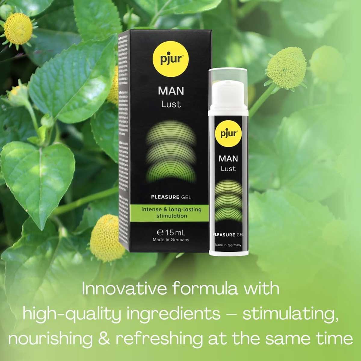 Gelul stimulant pjur MAN Lust este un accelerator al senzațiilor de plăcere, creat pentru bărbații care vor să simtă totul mai profund, mai intens și mai conștient. Formula sa avansată cu paracress natural (spilanthol) activează rapid zona intimă, crescând sensibilitatea și amplificând fiecare atingere într-o experiență memorabilă.