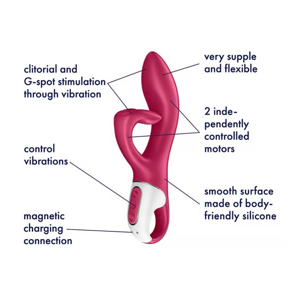 Transformă-ți dorințele sexuale în realitate cu noul vibrator Embrace Me de la Satisfyer. Este un vibrator foarte flexibil, cu mâner buclat care poate fi folosit pentru a aplica ușor sau agresiv, dupa mood, stimulare asupra punctului G și asupra clitorisului.